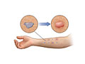 • Prick the skin under each drop with a needle. The needle passes through the drop and allows some of the allergen to penetrate your skin. For the intradermal test, a needle is used to inject the allergen solution deeper into the skin.